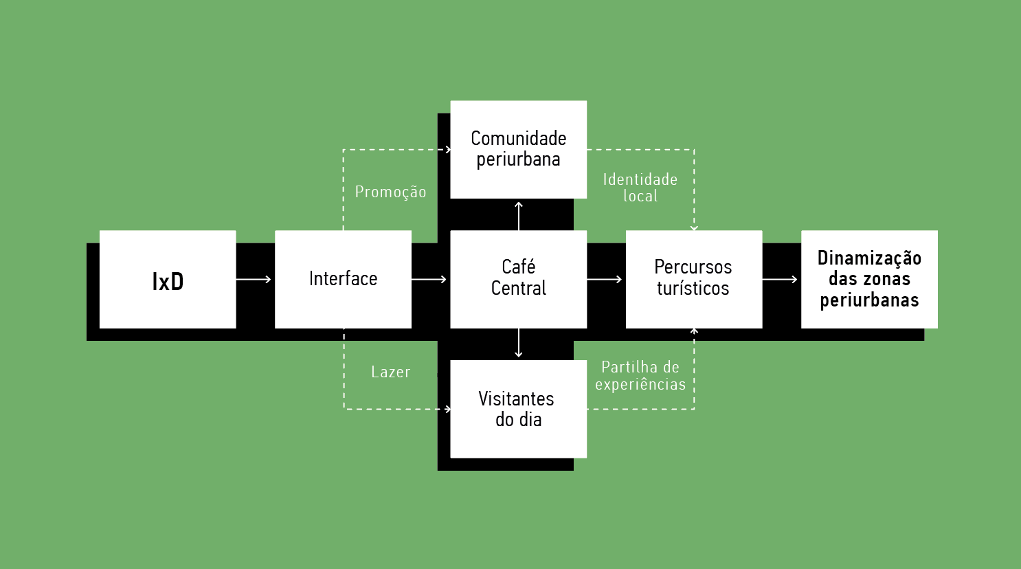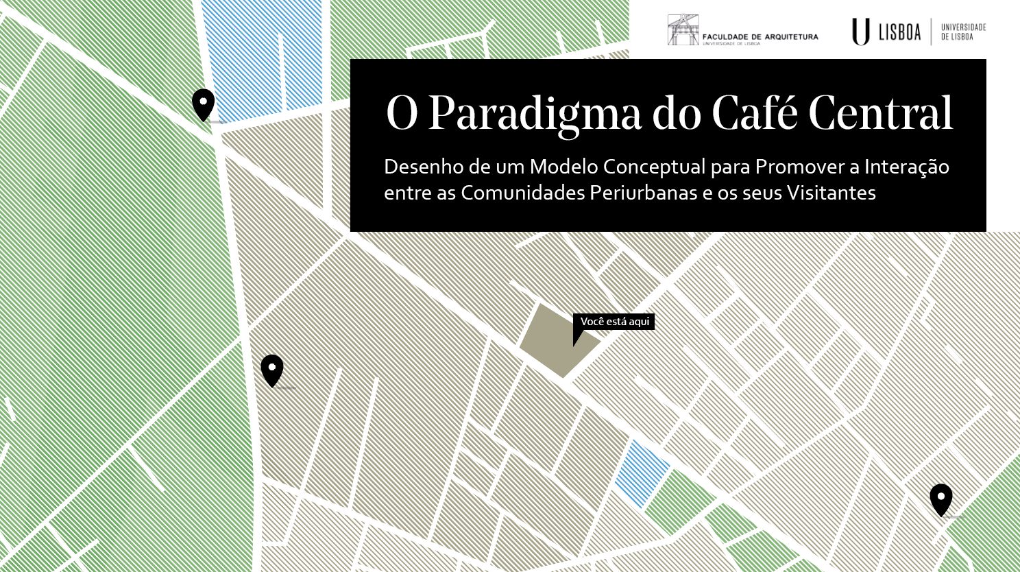 This research aims to create a multidisciplinary conceptual model articulated in various media, supported by an interactive interface, which ensures the promotion of periurban communities and promotes the exchange of experiences, as well as the construction of meanings between visitors and local inhabitants. Understood as an access point between the real and the virtual, Café Central is symbolically explored as a mediator object of human relations present in the vast majority of peri-urban locations in Portugal.
